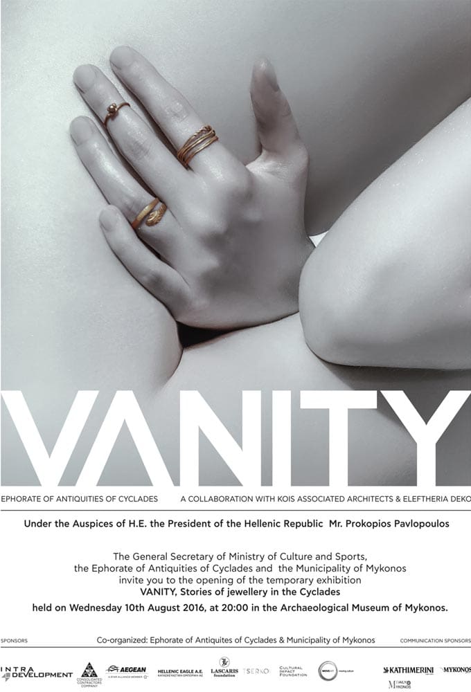 We are delighted to participate in a major exhibition at the Archaeological Museum of Mykonos. ‘Vanity. Stories of Jewellery in the Cyclades’ brings together seven millennia of jewellery from the Cyclades, alongside pieces by modern Greek artists designed especially for the exhibition.